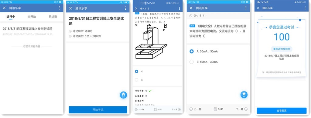 “线上安全教育考试系统”在学校网络安全与信息化办公室大力支持下,由实训中心李安邦老师牵头、教学质量提升工程工作小组全体成员积极参与完成。该系统试题库由从事多年实训教学的一线教师根据操作规程编写并经过多次审核修改后凝练而形成,包含了实训安全基本知识、各种安全标志以及应对措施等内容。