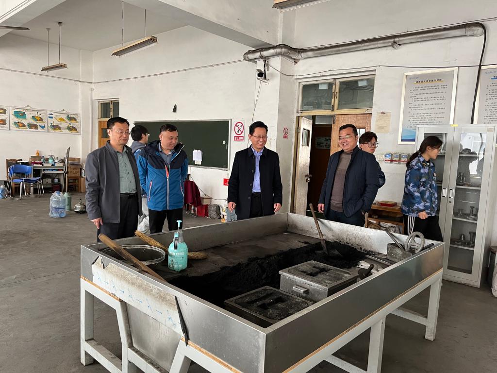 韩宝坤一行先后到数控加工实训室、普车实训室、铸造实训室、锻造实训室、热处理实训室、焊接实训室、电加工实训室、激光加工实训室、3D打印实训室、师生作品展室等进行学习调研,详细了解实训设备配备、实训教学运行情况,观看教师授课、学生实操情况,参观了学生的实训及竞赛获奖作品。