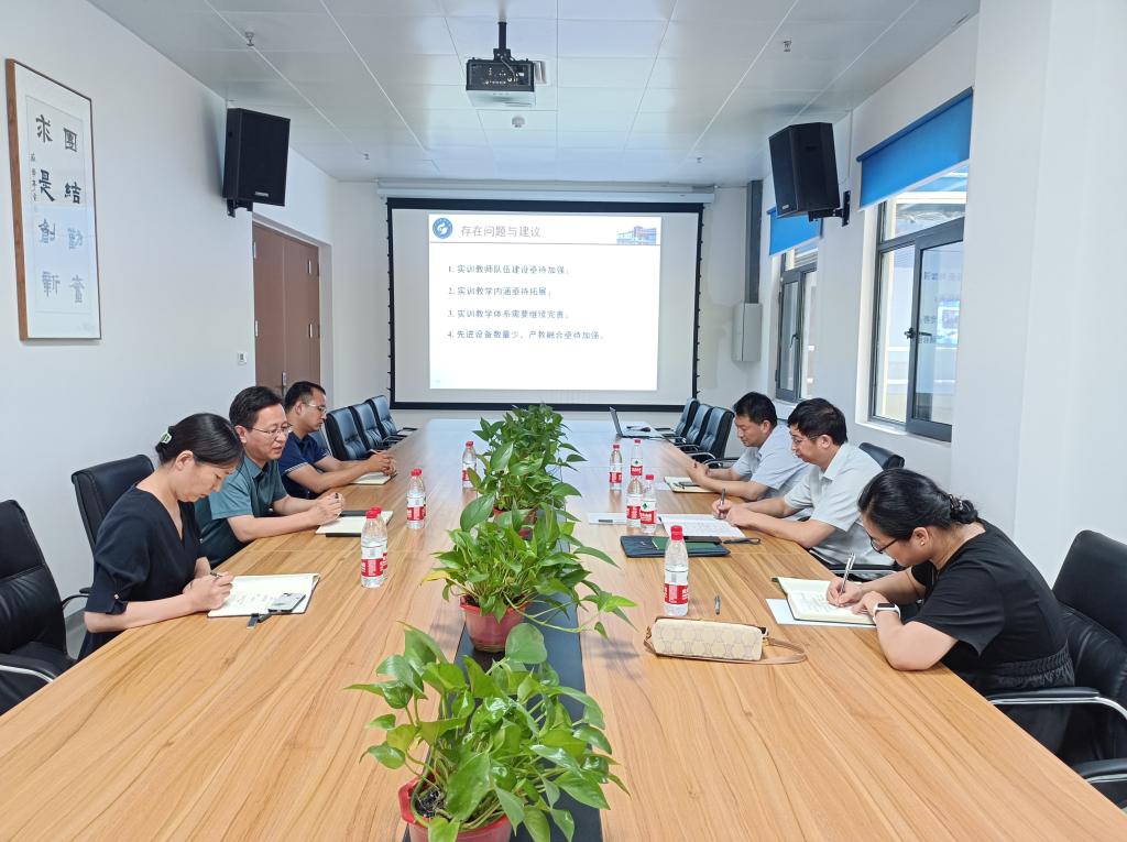 实地查看后,在会议室观看了437ccm·必赢国际宣传片。韩宝坤汇报了近年来实训中心在制度建设、实训教学体系建设、教师队伍建设等方面的工作和取得的成绩,并对实训中心目前面临的问题和工作设想进行了汇报。阳凡林对437ccm·必赢国际的工作给以肯定,并对中心发展提出几点希望和要求:拓展实训教学内涵,继续完善教学体系;加强与学院交流沟通,进一步明确实训教学对专业人才培养的支撑作用;加强与企业对接,拓展产学研合作,丰富实训项目。